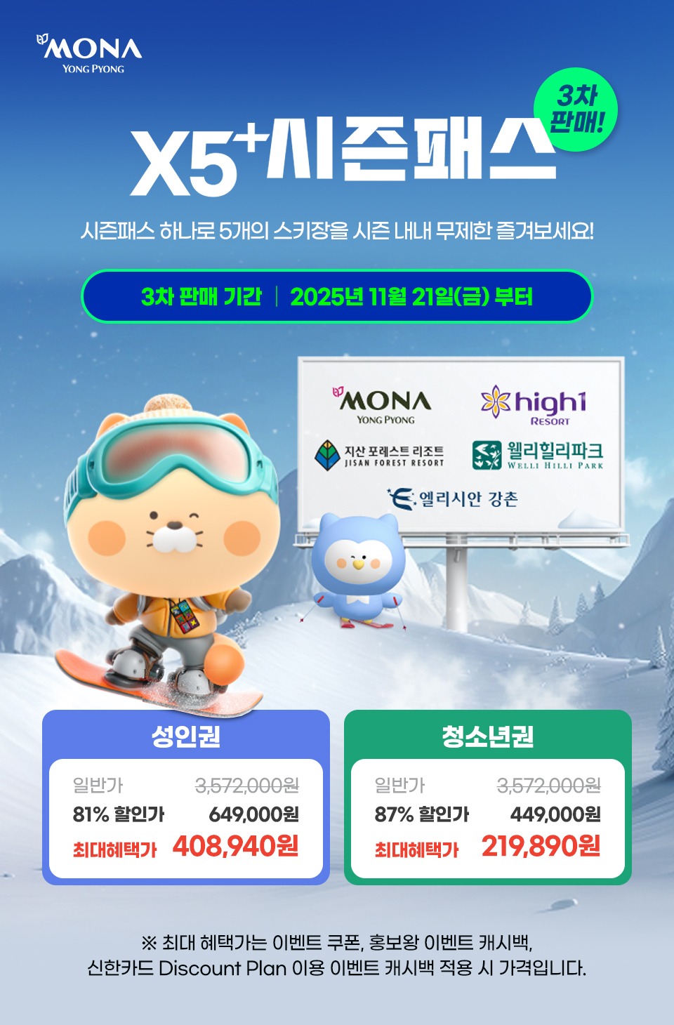 - 🎿 혜택: 5개 스키장 모두 무제한 이용